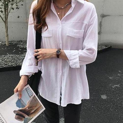 [삐까삐까]박시한 여성 화이트셔츠 오버핏 레이어드 기본 롱 남방
