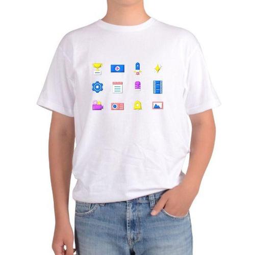 [에이치플러스몰]길단 아시아핏 반팔티 다양한 이모티콘 로케트 카메라 필름 gear그림 다양한색상 전사이..