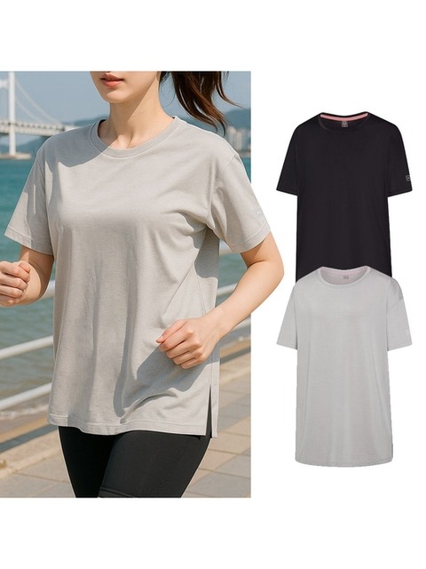 여성 컴포 쉴드 슬릿 긴기장 반팔 티셔츠 7K45361