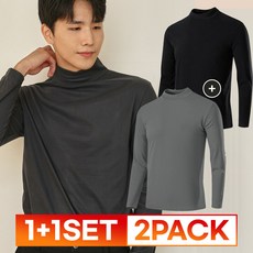 액티브온 남성 기모 목폴라 겨울작업복 보온 긴팔 티셔츠 1+1 세트