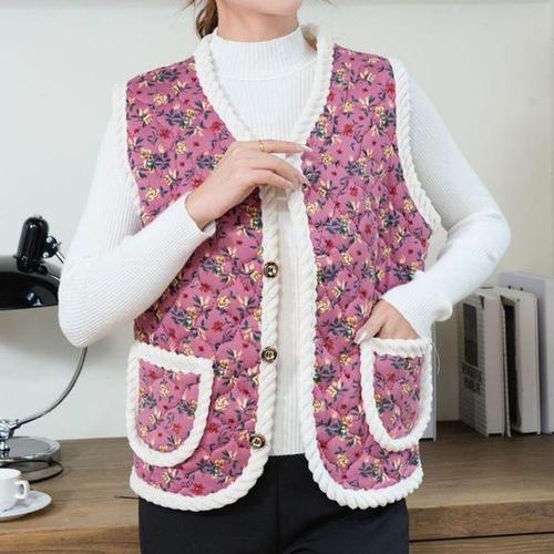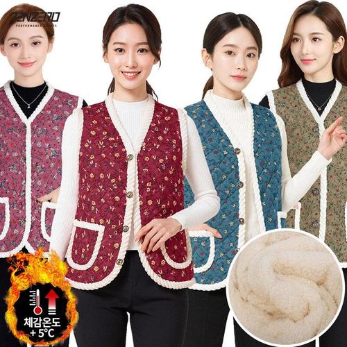 [셀러허브_여성트랜드패션]ONM 레트로 꽃무늬 김장 기모 할머니 겨울 융털 조끼