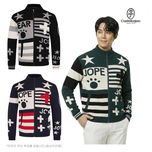 까스텔바작 남자 골프 방풍 풀집업 니트 반목 자카드 가디건 점퍼 BGEWSJ-302