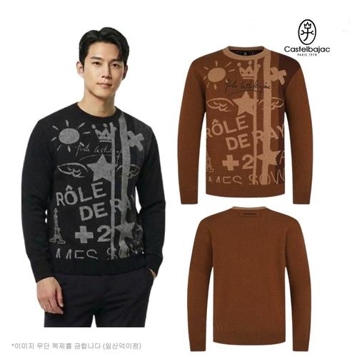 까스텔바작 골프 남자 스웨터 방풍안감 울100 겨울 자카드 니트 BGEWSW-203