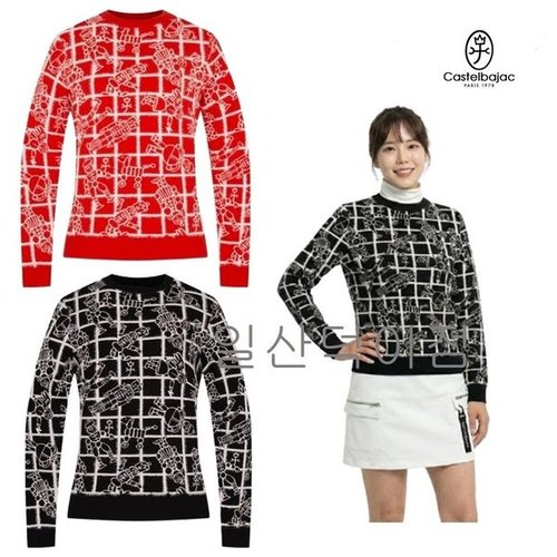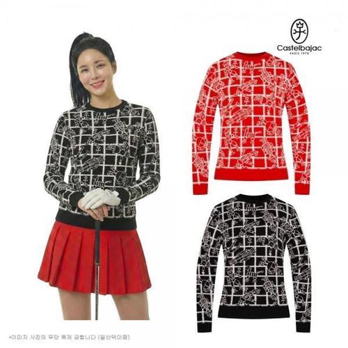 [까스텔바작]까스텔바작 골프 여성 자카드 패턴 방풍안감 겨울 라운드 니트 스웨터 EWSW-803 CA3824049