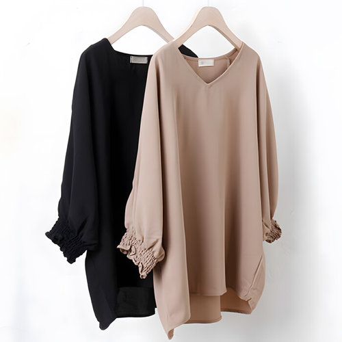 나야홍 / 빅사이즈브이블라우스 3053L502 도도꼬임소매블라우스