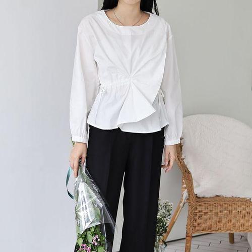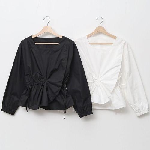 [옷자락] 여성 가을 하객 패션 언발란스 스트링 꼬임 러플 랩 셔츠