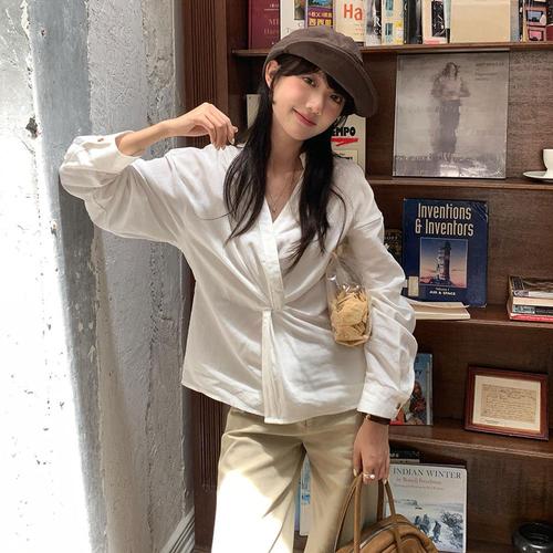 페이지 셔츠 브이넥 긴팔 꼬임 탑