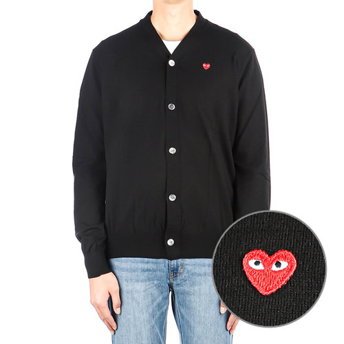 플레이 꼼데가르송 레드 하트 니트 가디건 블랙 AX N007 051 1