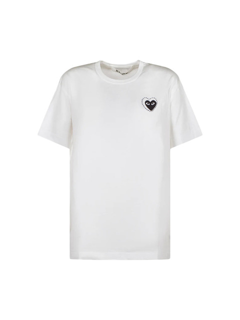 [꼼데가르송] 25SS 여성 블랙 하트 비즈로고 반팔 화이트 AX-T802-051-1