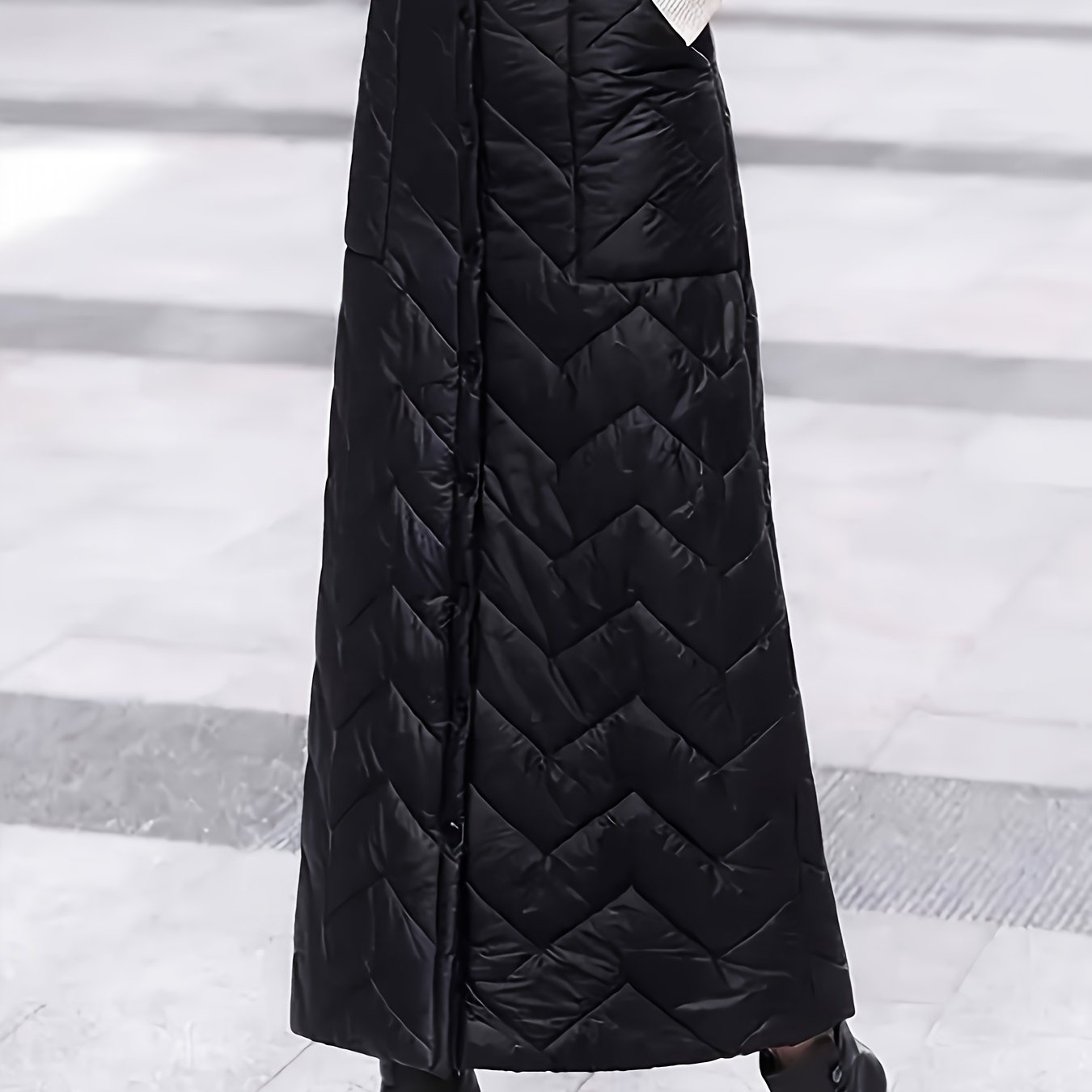 TEMU 여성용 겨울 따뜻한 기모 안감 스커트 - 포켓이 있는 우아한 H라인 실루엣, 단색, 캐주얼부터 포멀 웨어까지, 가을/겨울에 완벽, 캐주얼 겨울 의류, |우아한 H라인 실루엣|기모 안감 스커트, 여성 겨울 의류