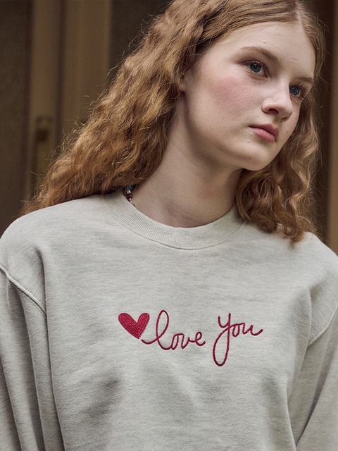 [꼼파뇨] 러브유 체인 자수 스웨트셔츠 오트밀