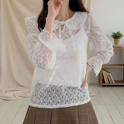 [다잇템]여성 꽃무늬 비침 리본 벌룬 프릴넥 크로쉐 봄