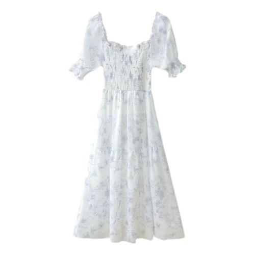 반팔 꽃무늬 롱 치마 원피스 여성 쉬폰 여름 WFMCL6B