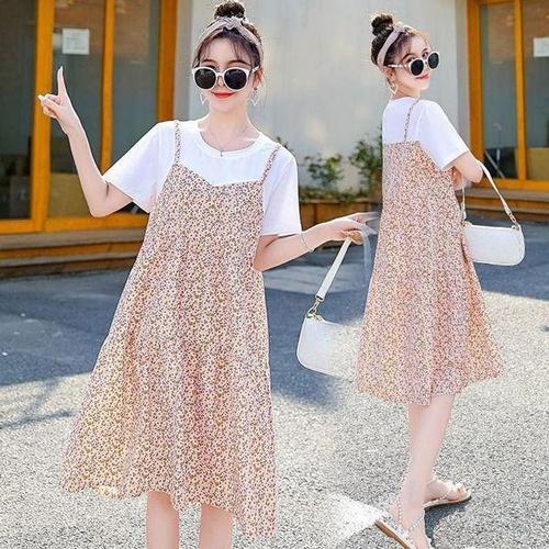 쉬폰 키밍 여름 쉬폰 꽃무늬 원피스 반팔 롱 여성 치마