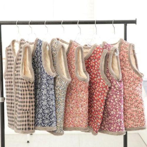 꽃무늬 김장 두꺼운 따뜻한 여성 조끼 기모 누 WFLMYGG
