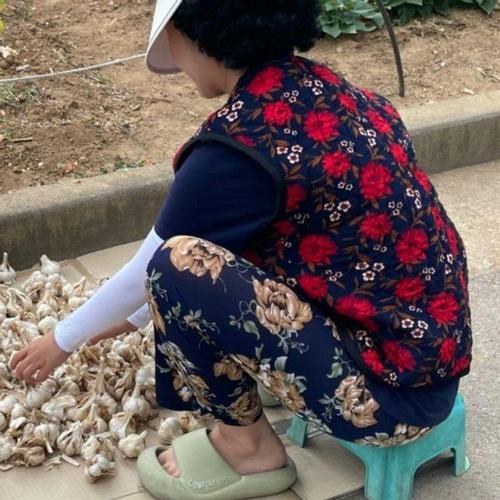 겨울 촌캉스 꽃무늬 김장조끼 할머니 솜 반팔 따뜻한