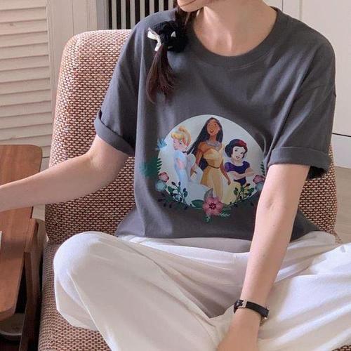 [다잇템]여자 U넥 공주프린팅 꽃무늬 박스 티셔츠