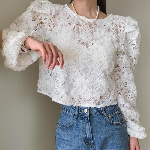 샵앤) 여성 레이스 라운드 꽃펀칭 쉬폰 시스루 블라우스 MSE-WBL-20374-아이보리