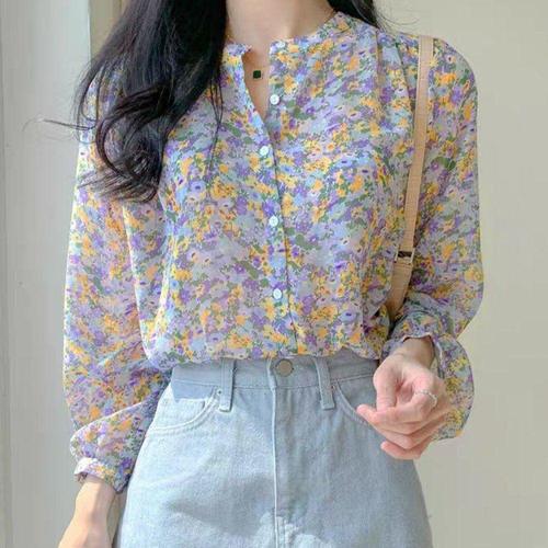 [에이치플러스몰]꽃무늬 인기 여성 플라워 벌룬 감성 쉬폰 블라우스 봄