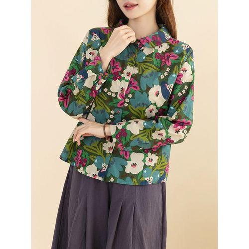 TKX 여성용 긴팔 플라워 프린팅 얇은 블라우스 봄 가을 패션 루즈핏 카라 리본넥 데일리룩 KC69