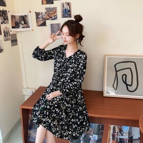 [엄지척]브이넥 롱원피스원피스 꽃패턴 소매 봄원피스 OPC001_19952792_667501