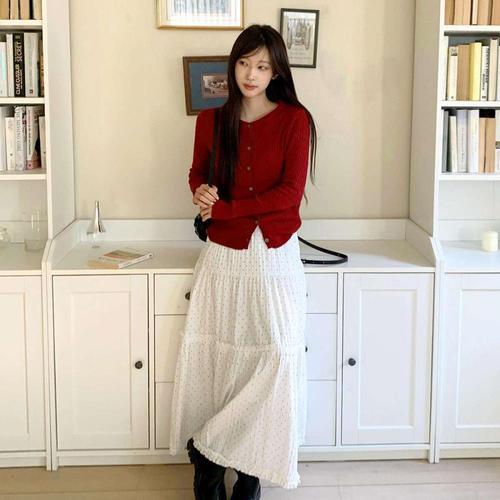 여자 꽈배기 크롭 롱슬리브 빨간니트 가디건
