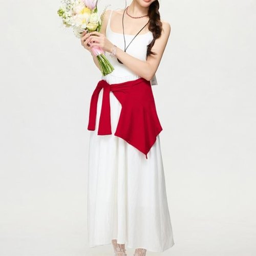 [에이치플러스몰]러플 스트링 끈나시 롱 원피스 여성 여름 치마 민소매 여자