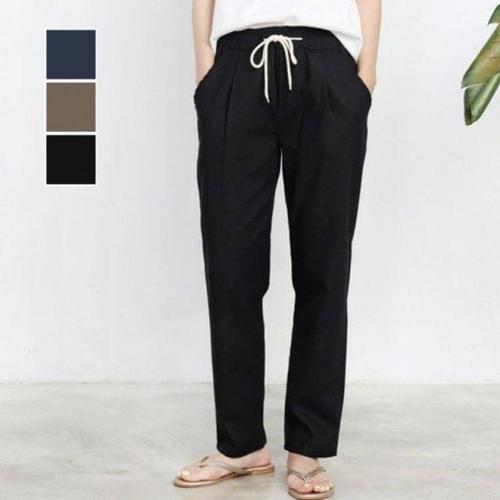 빼빼 여성용 끈조절 허리밴딩 스판 일자 슬랙스