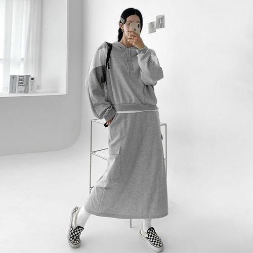 [유야]99까지 기모 면 배색 나그랑 후드티 카고 롱 스커트 트레이닝 세트 츄리닝 셋업 -SST0109H- 빅사이..