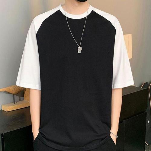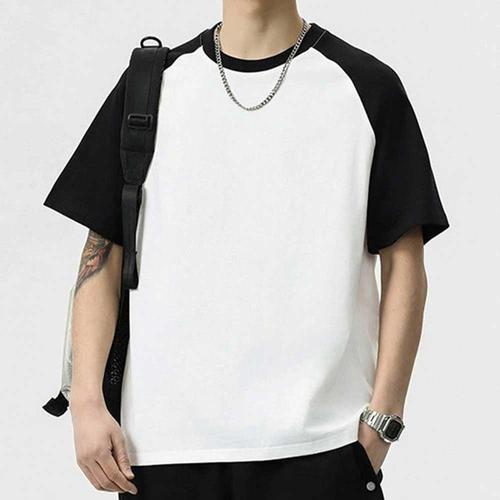 오버핏 배색 라글란 반팔 데일리 남자 캐주얼 티셔츠 WFMFQR0