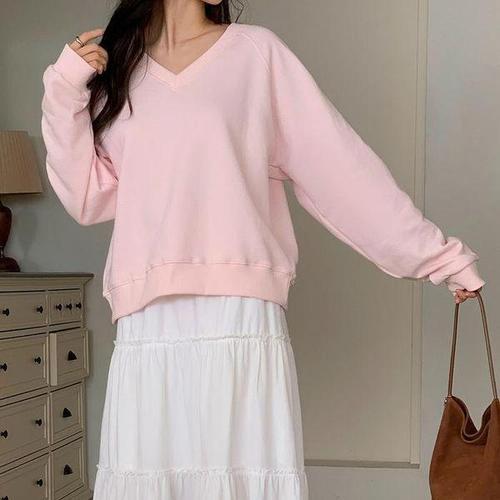 [셀러허브_여성트랜드패션]여자 V넥 라글란 민무늬 엷은 봄옷 맨투맨