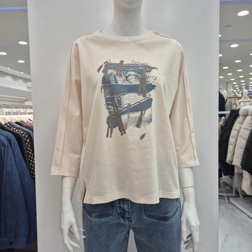 여자 스티치 나그랑 라운드넥 칠부티 봄 티셔츠