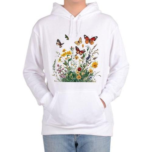 [에이치플러스몰]후드티 전사이즈 봄 곤충 나비 꽃 스케치 미술