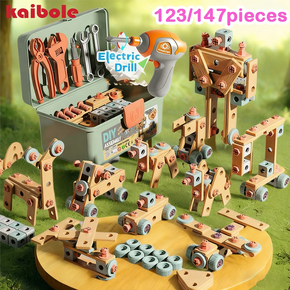 어린이 공구 세트 드릴 포함 DIY 너트 조립 퍼즐 모의 나사 조립 공구함 초기 교육용 분해 수리 STEM 몬테소리