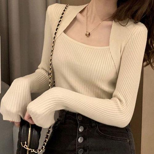 [에이치플러스몰]여성 볼레로 일체형 U넥 니트 긴팔티