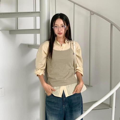 [다잇템_패션]여자 탱크 클래식 끈고정 내의 슬릿 나시티