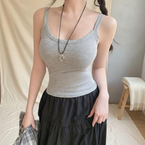 [다잇템]여성 골지 캡 내장 슬림핏 내의 클래식 나시