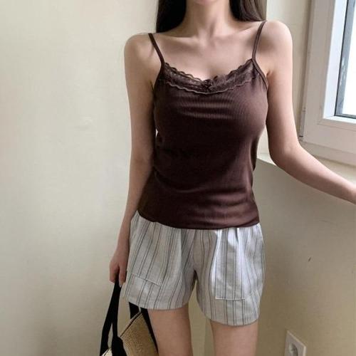 [다잇템][다잇템] 여자 포인트 레이스 리본 끈 내의 슬리브리스 티셔츠_24731808_588872