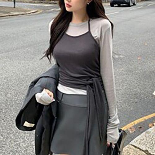[핑]여성 슬리브리스 세트 긴팔 티셔츠 121F2TR652_OR_IC