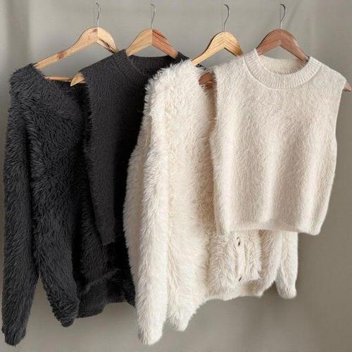 cammello 소프티 앙고라 퍼 니트 긴팔 크롭 끈나시 가디건 세트