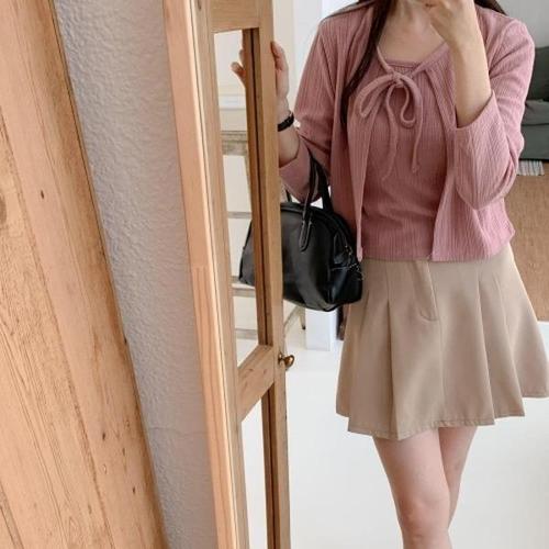 소프트 데일리 배색 나시 가디건 세트 JSC-0058