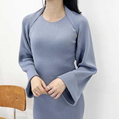 [엄지척]슬림핏 골지니트 롱원피스 볼레로 세트 슬리브리스_19556602_667501