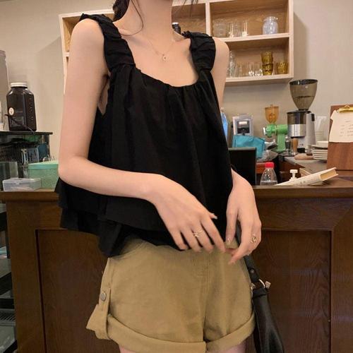 스테파니 HC07 네모 레이스 배색 프릴 나시 블라우스 A25SH5225