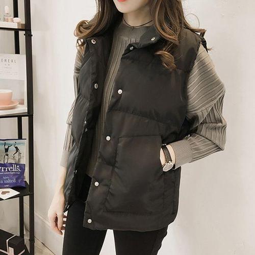 [다잇템][다잇템] 여자 베이직 검정 후디 슬리브리스 드로우코드 패딩 조끼_23435899_588872