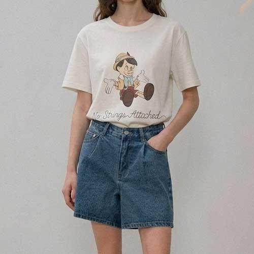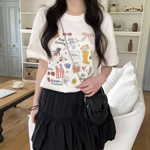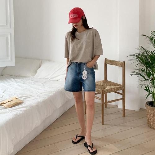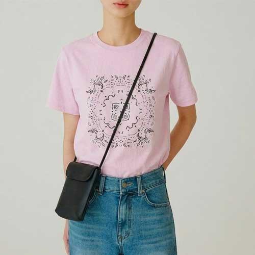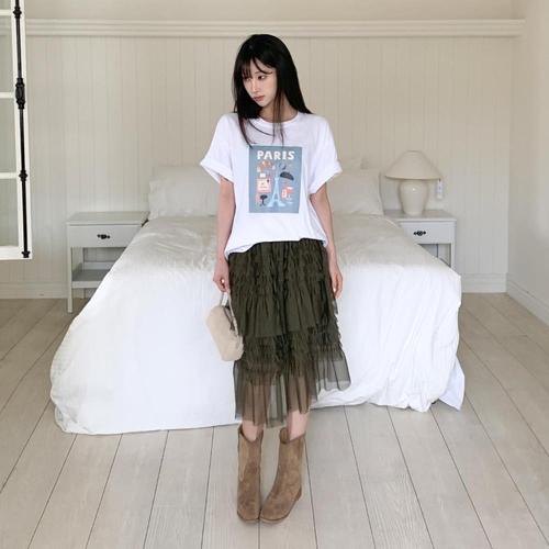 [다잇템]여자 코지 파리 일상룩 캐쥬얼 나염 반팔티