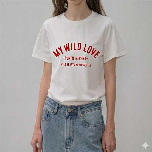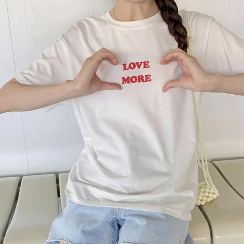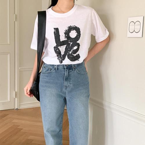 [옷자락]여자 라운드넥 빈티지 러브 나염 반팔티