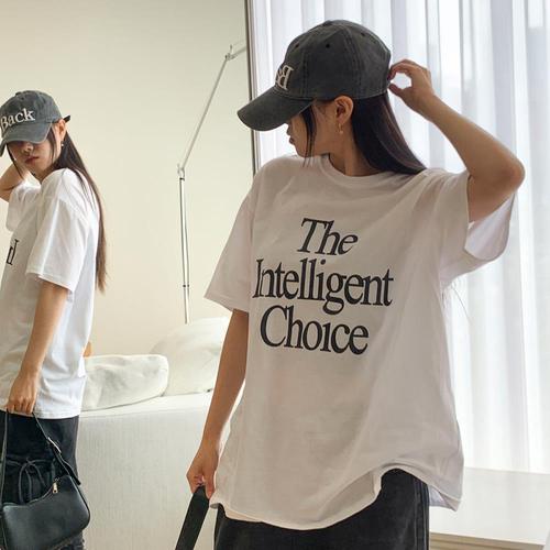 [다잇템]여자 박시 U넥 나염 필기체 반팔티