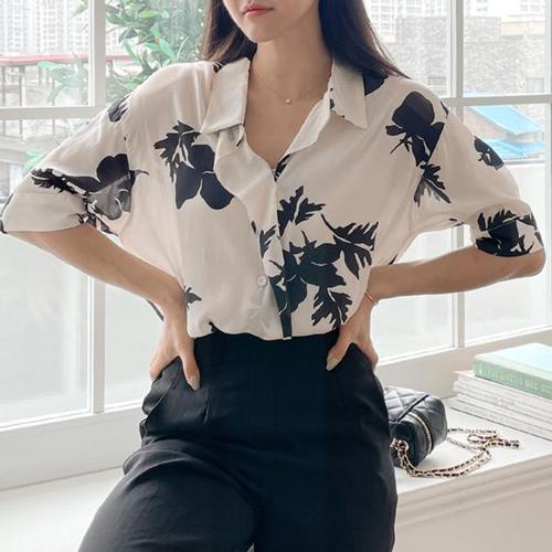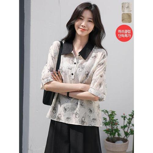 [키첼]에멜 카라 플라워 나염 블라우스