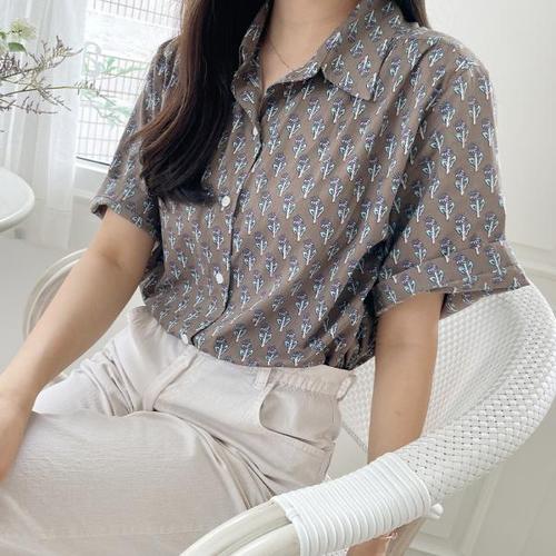 (도도한걸)로아나염블라우스/55~77프리사이즈/반소매블라우스/나염블라우스/무늬블라우스