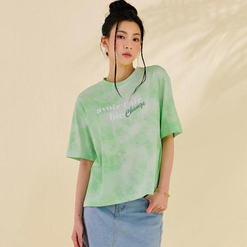 [체이스컬트][본사]여성 전판 나염 레터링 반팔 티셔츠-DBRG5884D0T